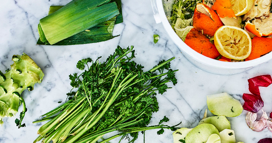 Använd alla delar av grönsaker, som purjolöksblad till en sallad eller dressing. Skal och ben kan användas till buljong. Överblivna stammar och stjälkar kan användas i puréer, soppor och stuvningar.
