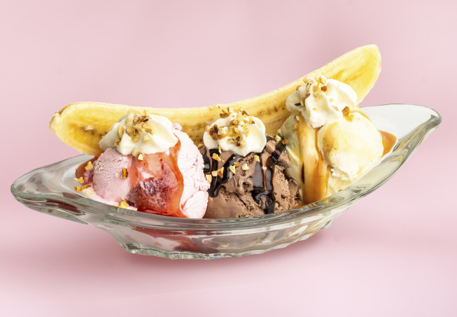 Banana Split är en tidlös dessert som väcker härliga nostalgiska minnen från barndomens glassbarer. För en uppdaterad version, lägg till nya glassmaker som till exempel KolaHavssalt eller Körsbär, experimentera med olika såser eller tillsätt knapriga tillbehör som kanderade nötter eller rostad kokos för att ge en extra dimension till desserten.