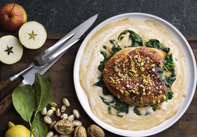 Den kanske finaste styckningsdetaljen som kan vara bas i så många olika kycklingrätter. Här har den bakats i ugn med honung och vinäger för att sedan serveras med en cidersås med äpple, lök och timjan. Underbara smaker både när det gäller kyckling och tillbehör. Ät och njut!