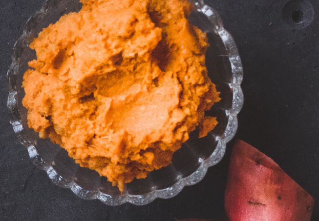 Mixa sötpotatis, solroskärnor, limejuice, olja och salt till ett smör. Servera som pålägg, dipp eller sås.