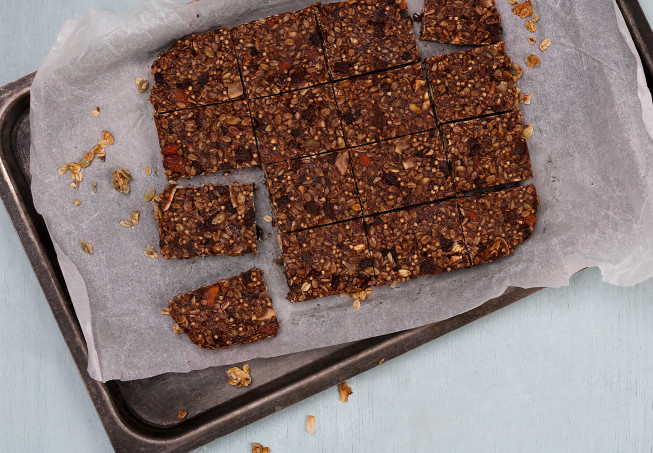 Vår ekologiska premiumgranola med kakao och kokos ger en smakrik och fiberrik bas i dessa enkla bars – perfekta som mellanmål, fika eller att ta med på språng. Receptet är inspirerat av brittisk flapjack men passar lika bra på den svenska menyn.