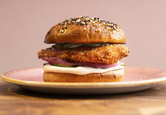 Vad sägs om kycklingbröst som paneras i panko och HELLMANN’S Professional, friteras gyllene, läggs på burgarbröd och serveras med inlagd gurka och sriracha? Säg ja och skriv upp det goda på din meny!