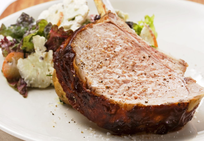 Tre-i-ett-glace grillad karré med potatissallad och syrlig rotfruksallad