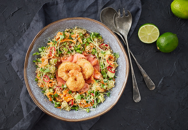 En måltidssallad med fisk, skaldjur och massor av smak!