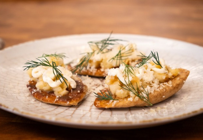 Upptäck ett smakrikt och rustikt snacks där rågpannbröd möter söt, bakad rotselleri, frisk pepparrot och dill. Perfekt som en liten aptitretare eller till minglet. Servera de ljumna bröden med en klick smetana och låt gästerna njuta av en modern tolkning av klassiska råvaror.