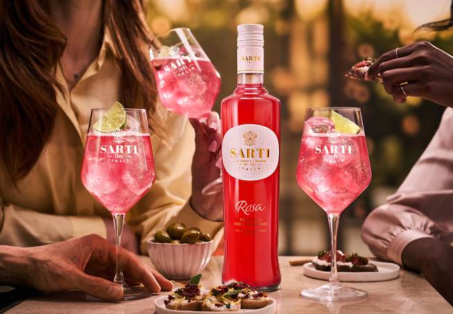 - Häll först i prosecco och sedan Sarti Rosa, toppa med sodavatten.