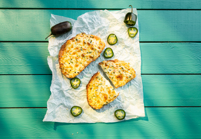 Vad som är ett ultimat vitlöksbröd och inte är förstås väldigt individuellt. För Unilever Food Solutions görs det på ett trevligt surdegsbröd och med lite angenäm hetta från jalapeño. Undrar du var smöret tog vägen? I det här receptet används HELLMANN’S Professional istället. Enkelt, smidigt och gott.