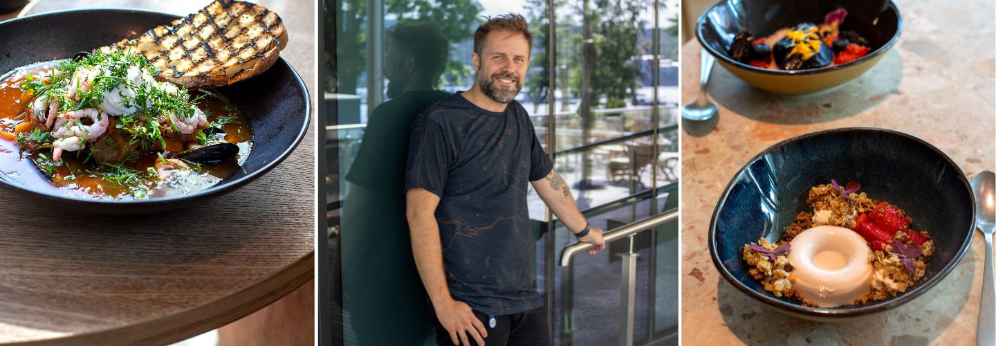 – Jag är ursprungligen från Västerås och har jobbat länge i branschen. Min fru är uppvuxen här i området och vi har alltid pratat om att någon gång bo vid kusten i en mindre stad. När den här möjligheten dök upp tvekade vi inte, berättar Emil. Han flyttade till Härnösand några månader före invigningen och fick börja med att rekrytera nyckelpersoner till kök, restaurang och bar. När ledningsgruppen var på plats fylldes teamen på med medarbetare till frukost, disk, servis och bar.