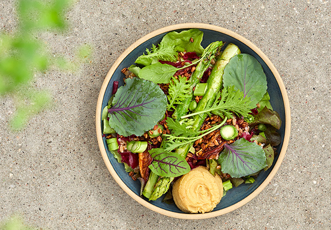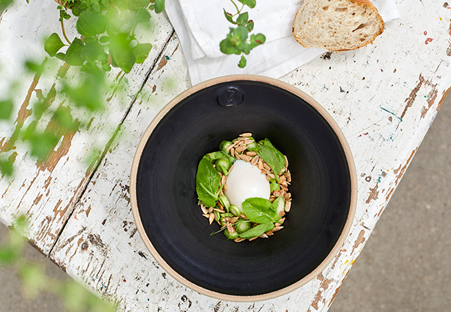 "Med grönsaken ständigt i fokus blir det aldrig 200 gram kött på tallriken. Vi erbjuder en full meny för både vegetarianer och veganer, men erbjuder också alltid kött eller fisk."
