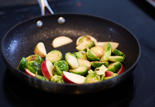 Kryddstekt rostbiff med brysselkål och äpple samt brynt pinjenötssmör och mandelpotatispuré.