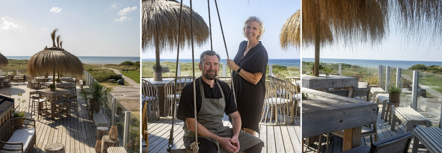 Även dukning och porslin måste klara ett tufft utomhusklimat, med stundtals hårda vindar och sand som blåser in från stranden.