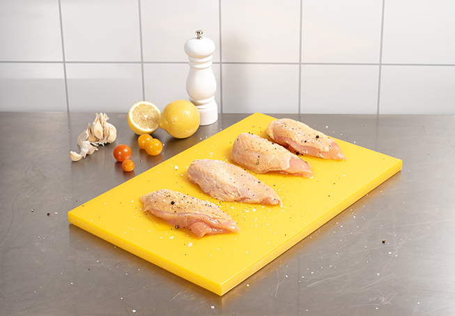 Var extra noga med att inte förväxla den gula skärbrädan - kycklingbakterier gillar väl ingen.