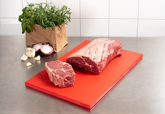 Carpaccio eller råbiff. Välj den röda skärbrädan till rått nötkött.