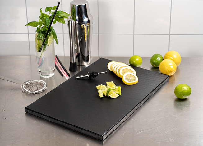 Lime till Coronan eller mojiton. Den svarta skärbrädan passar bra i baren.
