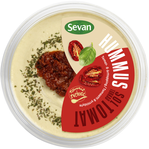 En hummus toppad med härlig tomatröra. Röran är gjord på soltorkade tomater som mixats med citronjuice och kryddor. Ställ fram den på bordet och låt gästerna välja om de vill ta hummus, soltorkad tomat eller både och. Tillverkas i Sigtuna, Sverige.Läs mer Visa mindre
