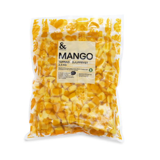 Tillför en söt smak och exotisk dimension till dina rätter med tärnad mango. Vår mango är omsorgsfullt skördad och snabbt nedfryst för att bevara fräschör, vitaminer och mineraler. Mango passar utmärkt i fruktsallader, smoothies, bakverk och är ett smakrikt komplement i desserter. Varje förpackning innehåller 2,5 kg tärnad mango i 20 x 20 mm.Läs mer Visa mindre